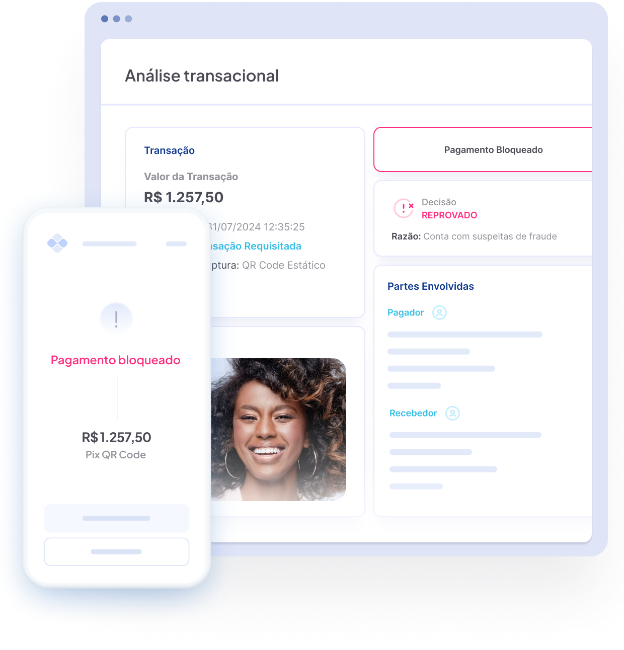 Solução completa para validação de transações e pagamentos Pix, TED, boleto, cartão, entre outros.